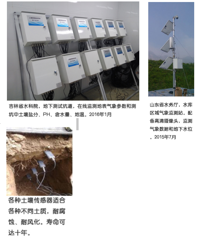 物聯(lián)網(wǎng)氣象和墑情監(jiān)測(cè)站廣泛應(yīng)用于自然環(huán)境氣候監(jiān)測(cè)、農(nóng)林氣候監(jiān)測(cè)、生態(tài)環(huán)境及地質(zhì)災(zāi)害監(jiān)測(cè)等多個(gè)領(lǐng)域,可對(duì)多種氣象環(huán)境因子(環(huán)境溫度、環(huán)境濕度、風(fēng)速、風(fēng)向、氣壓、光照度、光合有效輻射、紫外輻射、日照時(shí)數(shù)、總輻射、雨量、土壤水分、CO2、土壤溫度、降雨量、雨雪報(bào)高、露點(diǎn)溫度、液位、水面蒸發(fā)、氧化還原電位、PPM污染物、顆粒物等幾十種要素可供選擇)進(jìn)行監(jiān)測(cè);又可根據(jù)用戶需求定制其他測(cè)量要素。